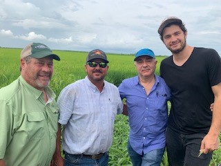 From left: Mark Pousson, Jason Benoit, Pedro Schettino, Sr. and Pedro Schettin, Jr. at the Benoit rice farm.
