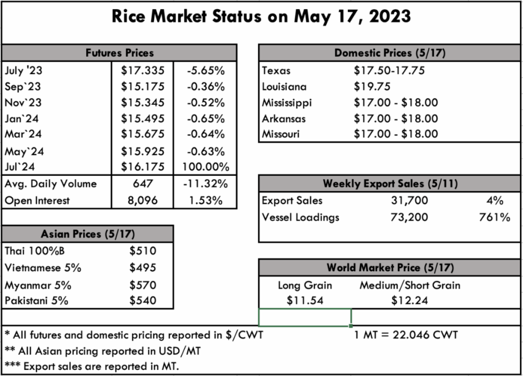 The USDA Grain Report most recently published calls for global rice production to be up 12 million tons from last year to a new record of 521 million tons. Pakistan had the largest bump in the numbers as it is recovering from a significant drought, and China is a close second where they expect to see an increase as well from a recovery of dry conditions. Global stocks are forecast down by 2.5 million tons to 167 million, where China and India hold a staggering 81% of all global stocks. Regarding the United States, it is expected that imports will remain flat at 1.25 MMT on a larger crop and sustained fragrant rice procurements. The report shows that exports from the U.S. are forecast to rise with a larger crop both for medium and short grain, thus creating lower prices. It is expected that exports will increase from 2.05 MMT to 2.35 MMT.