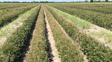 I know some of you rice farmers also grow soybeans which can be an excellent choice for rotation with rice. I also know soybeans can be a risky crop for Southeast Texas farmers. Our unpredictable weather (sometimes heavy rains at planting and near harvest and drought conditions during podfill) frequently is not conducive to soybean production. But this year, at least east of Houston, weather has so far cooperated. That being said, one of my responsibilities as an entomologist in Southeast Texas is to provide management guidelines for insects attacking soybeans. This year, my project is evaluating novel insecticides for control of the array of insects damaging soybeans. I scout my plots for insects and then apply treatments when populations reach a certain threshold. I emphasize “scout” which is crucial to successful soybean production in Southeast Texas. Our warm, humid climate and long growing season are perfect for rapid build-up of pest populations. Case in point occurred this year in my soybean research plots. Soybeans were R4 (very susceptible stage to insect attack) when I began collecting by sweep net a few Lepidoptera larvae…mainly green cloverworm. At this time, defoliation was probably no more than 1-5%…no big deal. But within a matter of days, populations skyrocketed resulting in close to 20% defoliation which triggered application of the treatment insecticides. My research plots are in a 4-acre field of CZ6020X soybeans. The untreated research plots and the rest of the soybean field are completely defoliated now. Many years ago, I inspected a field of soybeans in Jefferson Co. The crop had good yield potential, but the farmer went on a short fishing trip in September when defoliator densities increased explosively resulting in “soybean sticks” with no foliage upon his return. The soybeans were at podfill when the attack occurred, so the farmer lost his entire crop…pods did not fill.